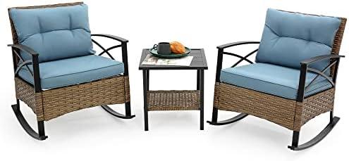 However, there are some considerations. While the robust frame is a plus for stability, the set’s weight might pose a challenge for rearranging. Although the cushions are machine-washable, they require dry time, which could be inconvenient for spontaneous gatherings. The rocking chairs, while adding a charming touch, may not suit everyone’s taste in outdoor aesthetics. if comfort and functionality are your priorities, this patio set will enhance leisure time in your backyard or garden.