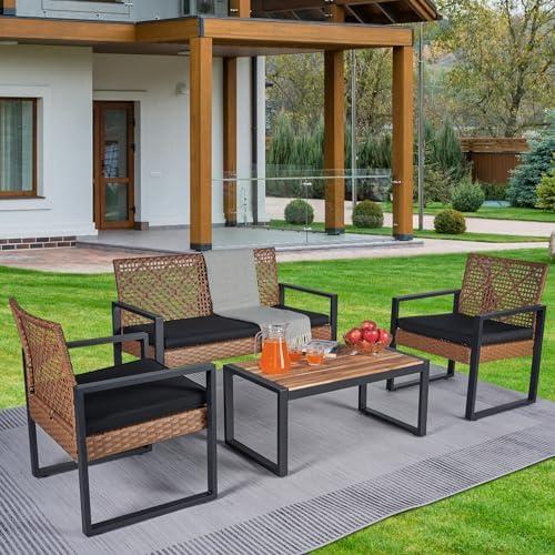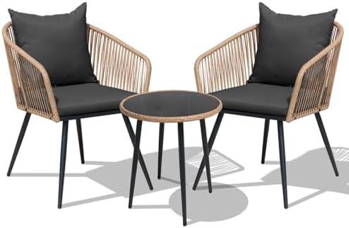 However, there are a few considerations to keep in mind. Although designed for durability with a powder-coated steel frame and all-weather PE rattan, care must be taken with the cushions, which should be stored indoors during inclement weather to prolong their lifespan. Additionally, while the table is sturdy, its compact design may limit its use for larger gatherings or meals. this outdoor furniture set provides a stylish and cozy seating option for those seeking to enhance their small outdoor areas.
