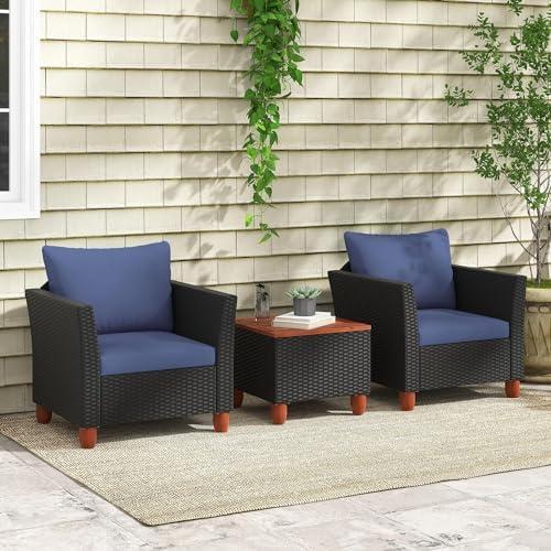 While the stylish design and easy assembly are major benefits, it’s worth noting some potential drawbacks. The wicker may require periodic cleaning to maintain its appearance, and the cushions could fade if left exposed to direct sunlight for extended periods. Additionally, the compact size may not be ideal for larger gatherings. However, the set’s charm, comfort, and functionality outweigh these challenges, making it a fantastic choice for a cozy outdoor conversation spot.