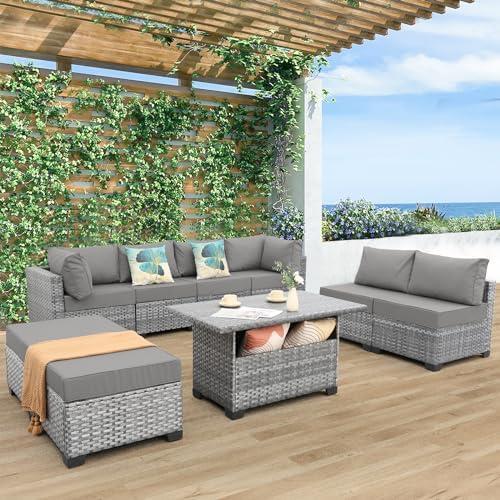 7-Piece Sectional Patio Furniture Conversation Set with Modern Glass Coffee Table