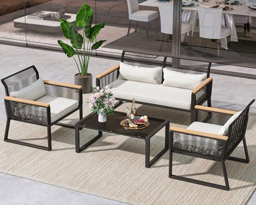 While the stylish design and robust construction are appealing, there are a few considerations to note. The set requires assembly, which may take some time and effort, especially if you’re unfamiliar with such tasks. Moreover, the cushions, although comfortable, could benefit from additional waterproofing for heavy rain exposure in some climates. Despite these minor drawbacks, this stylish and functional group of outdoor furniture is an excellent investment for enhancing your outdoor space.