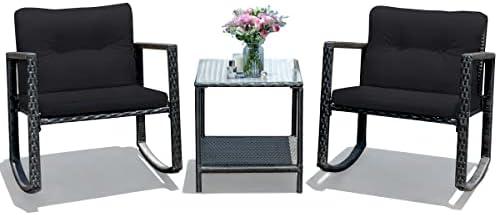 Stylish and Comfortable Patio Rocking Chair Set with Glass Table
