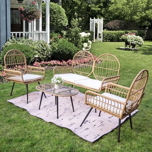 However, like any outdoor furniture, there are some considerations to keep in mind. While the cushions are thickly padded and removable for comfort, they may require regular cleaning and maintenance to stay fresh. Additionally, assembly is necessary, which might be a drawback for those who prefer a hassle-free setup. Despite these minor cons, the set’s aesthetics and practicality make it a worthwhile addition to any outdoor conversation area. Consider enhancing your outdoor experience with this eye-catching furniture by checking it out here.