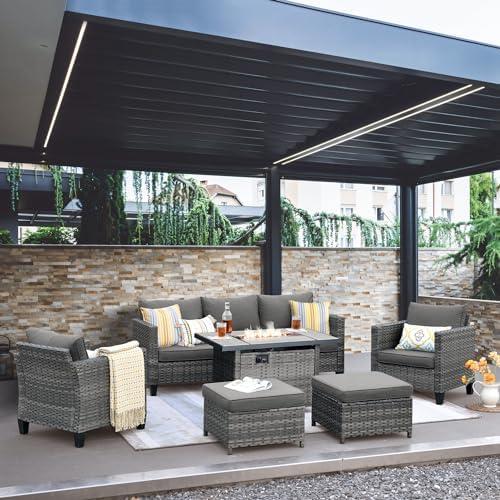 Stylish Outdoor Wicker Rattan Sofa Set with Fire Pit Table