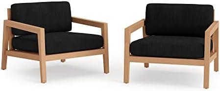 The seating option features a sophisticated design that blends premium teak wood with minimalistic styling, reminiscent of upscale rooftop patios. A wide stance and uniquely angled framework provide both sturdiness and a timeless aesthetic. Comfort is assured with extra thick, luxuriously supportive cushions wrapped in easy-clean, fade-resistant fabric, allowing for stress-free outdoor enjoyment. The ergonomically designed cushions contain quick-dry foam, enhancing not only comfort but also durability for extended use in outdoor settings.