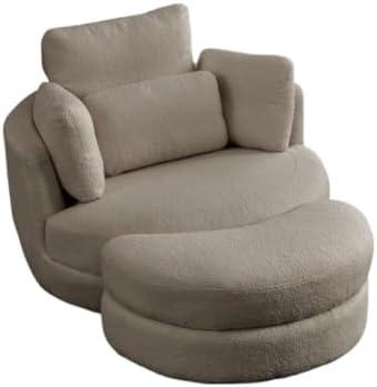 This oversized swivel chair combines a unique design with practicality, featuring a spacious seating area that allows for lounging in various positions while enjoying your favorite activities. The high-density foam cushions ensure a soft and supportive experience, while the additional cylindrical pillow enhances head support when reclining. Crafted from a sturdy solid wood frame and reinforced with a durable iron base, it promises longevity and stability. The stylish swivel function adds to its appeal, making it a versatile addition to any living room.