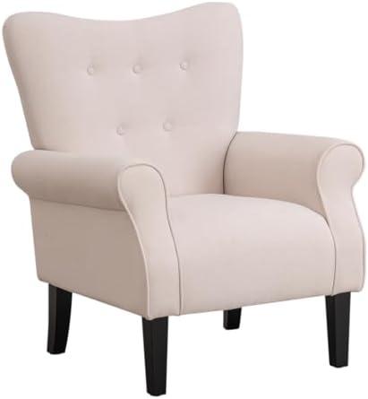 This accent chair combines elegance with functionality and is designed to fit flawlessly into various spaces, whether your living room, bedroom, or a cozy reading nook. Made from skin-friendly linen fabric, it boasts a soft and breathable exterior that enhances comfort during long sitting sessions. The thick cushion is filled with high-density foam, providing exceptional support while alleviating fatigue, making it an ideal choice for relaxation. With sturdy solid wood legs featuring non-slip felt pads, this chair ensures stability without damaging your floors, offering an attractive and practical addition to your home.