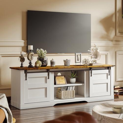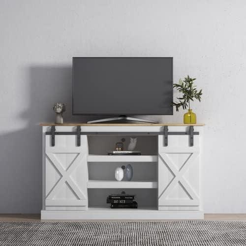 Stylish TV Stand with Barn Door Design for Up to 65-Inch Screens