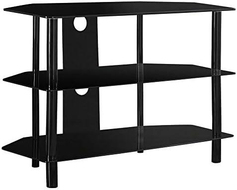 Monarch Specialties Black Metal TV Stand with Tempered Black Glass, 36-Inch