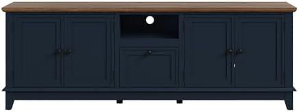 Transform your entertainment area with a piece that seamlessly blends style and practicality. This 72-inch TV stand features two spacious cabinets with adjustable shelves, allowing you to customize the storage to fit your media devices and accessories. Its stunning navy blue finish, contrasted by a beautiful wood-grain textured top, adds a sophisticated flair to your living room. Easy assembly is another great feature, thanks to the quick-install hinges and included detailed instructions. Additionally, the included cable management system keeps wires organized and out of sight, enhancing the overall aesthetic of your space.