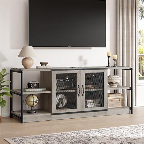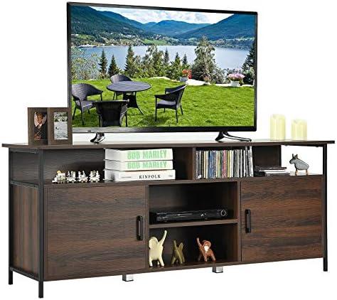 This versatile piece serves as a stunning focal point in your living room while offering ample space for a television up to 65 inches. The spacious tabletop can also hold decorative items like plants or photo frames, enhancing your living area’s aesthetic. With multiple open shelves and two cabinets featuring doors, keeping your entertainment space organized is a breeze. The three-position adjustable shelves cater to varying storage needs, ensuring you can accommodate both short and tall items effortlessly. Moreover, the construction boasts sturdy iron pipes and additional legs for increased stability, preventing any worries about a toppling TV.