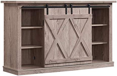 Transform your living space with this innovative piece featuring barn-style sliding doors, designed to blend functionality with rustic charm. Accommodating most flat-screen TVs up to 60 inches and weighing up to 50 lbs, the stand also offers an impressive nine adjustable shelves to meet your storage needs. The integrated CMS Cable Management System cleverly hides messy wires, keeping your space neat and tidy. Not only does it act as a TV stand, but it also doubles as a stylish storage solution for audio/video components, games, or books. Easy assembly ensures that you can set it up quickly and start enjoying its charm almost immediately.