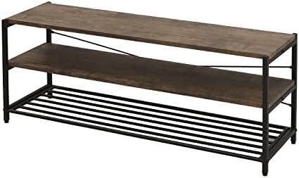This versatile stand not only supports televisions up to 40 inches but also adds a touch of elegance to your living space. The rust-resistant powder coating ensures that the stand maintains its stylish appearance over time, while the combination of steel and synthetic resin fiberboard adds strength and functionality. Its dimensions provide ample surface area while remaining compact enough for smaller rooms or setups. With its modern vintage charm and practical design, this piece is a functional addition to any home.