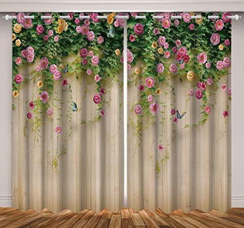 These beautiful window drapes boast a charming floral motif combined with green leaves set against wood boards, creating a rustic yet elegant aesthetic. Measuring 84 inches in length per panel, this set includes two highly functional pieces that can elegantly decorate various spaces, from living rooms to bedrooms. The high-definition printing showcases the vibrant colors and intricate design, making these curtains a stunning addition to any room. The blackout feature helps to block out 70%-90% of sunlight, protecting your privacy while enhancing your relaxation experience.