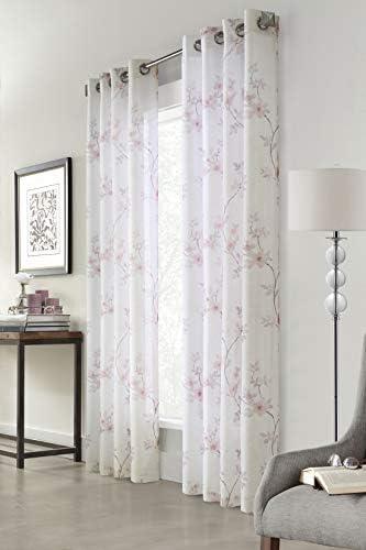Loft Living Bloom Faux Linen Grommet Printed Curtain Panel 50″ x 84″ in Blush