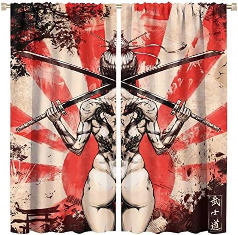 Stylish Blackout Curtains Featuring Samurai Design for Home Décor