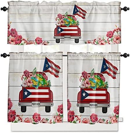 Stylish Window Treatment Featuring Puerto Rican Flag and Hibiscus Design