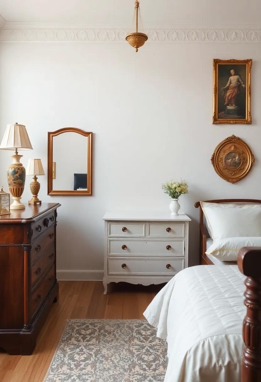 - Use a Vintage Mirror: An ornate antique mirror can reflect light and create an illusion of space while adding elegance.