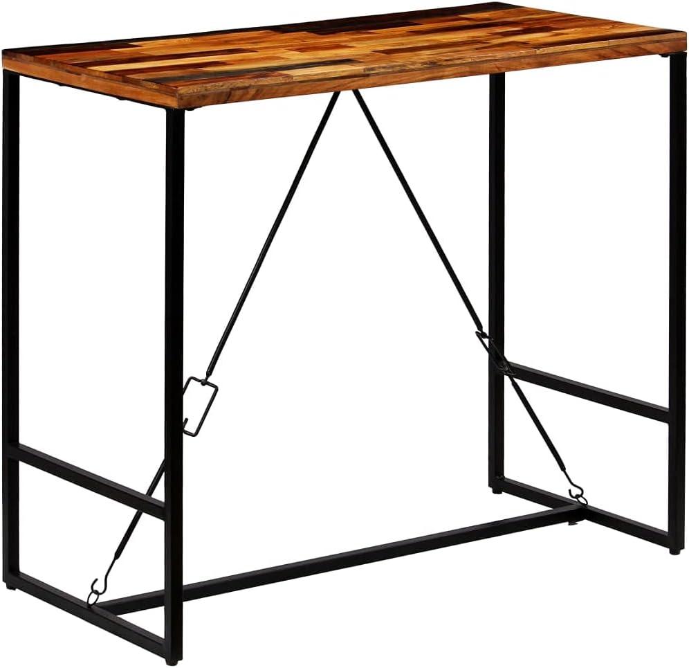 This bar table is an eye-catching piece made from solid reclaimed wood, sourced from old buildings, that brings a unique aesthetic to any kitchen or dining area. each table has distinctive grains and colors,thanks to its varied wood composition,which includes species like pine,oak,and mango wood.The durable tabletop is weathered and aged, ensuring it won’t shrink or warp over time. Complemented by robust powder-coated steel legs, this table not only embodies an industrial charm but also guarantees stability during use. Its dimensions of 47.2″ x 23.6″ x 41.7″ provide ample space, making it perfect for both casual dining or as a gathering spot for social events in cafes and restaurants.