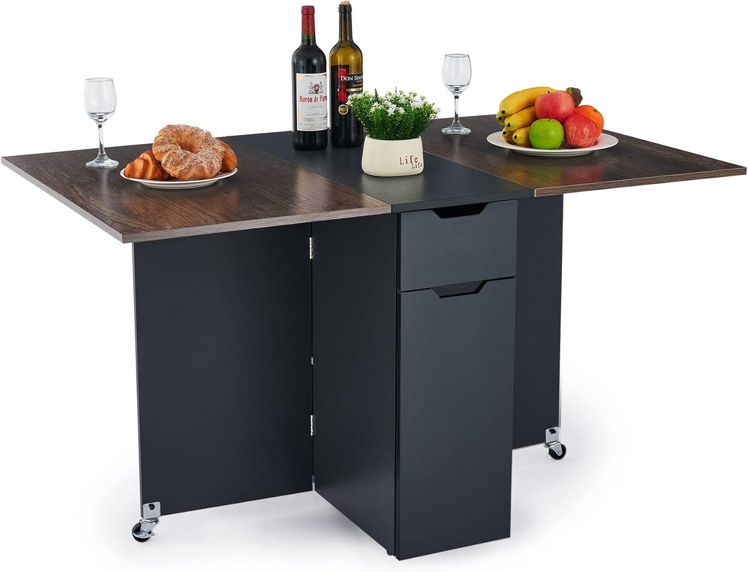 On the practical side, it features six rolling wheels for effortless portability, allowing you to reposition the table as needed, whether for dining or as an extra workspace. The wheels lock for stability, ensuring safety during use. Durability is a key feature, as the particle board tabletop can hold up to 110 pounds, striking a balance between functionality and aesthetic appeal. Assembly is straightforward,accompanied by clear instructions for a hassle-free setup. However, potential drawbacks include the size limitations when fully expanded, which may not suit larger gatherings.
