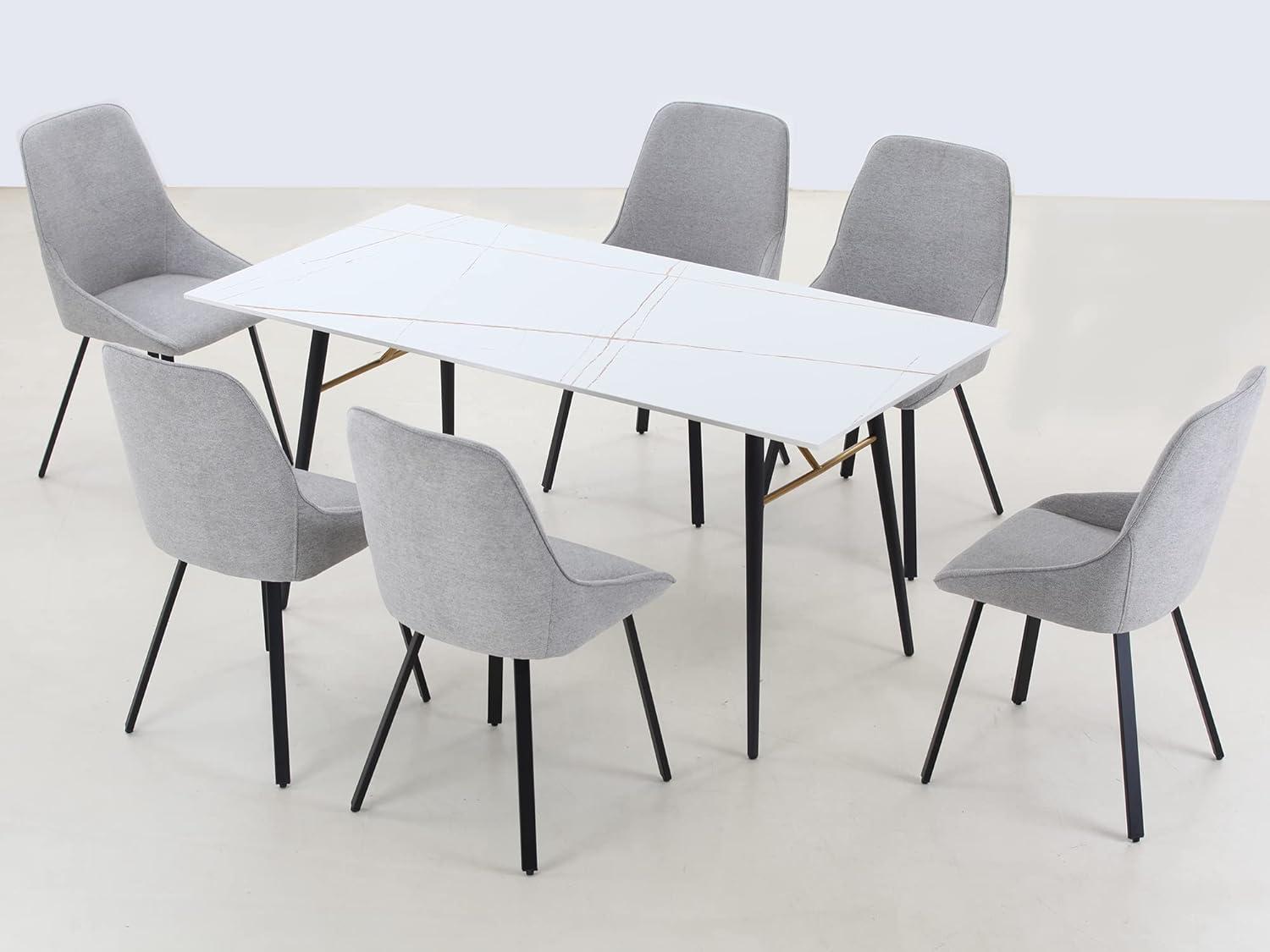 This exquisite rectangular dining solution comfortably accommodates 6 to 8 individuals, making it ideal for family meals and social gatherings. With dimensions of 31.5″ D x 70.87″ W x 29.53″ H,this table provides a spacious surface for plates,utensils,and decorative accents during special occasions or everyday dining. Constructed with a robust 1.57” high-quality MDF tabletop and a stable T-shaped leg structure,it ensures an enduring performance against scratches,stains,and water damage,making it a practical choice for any household.