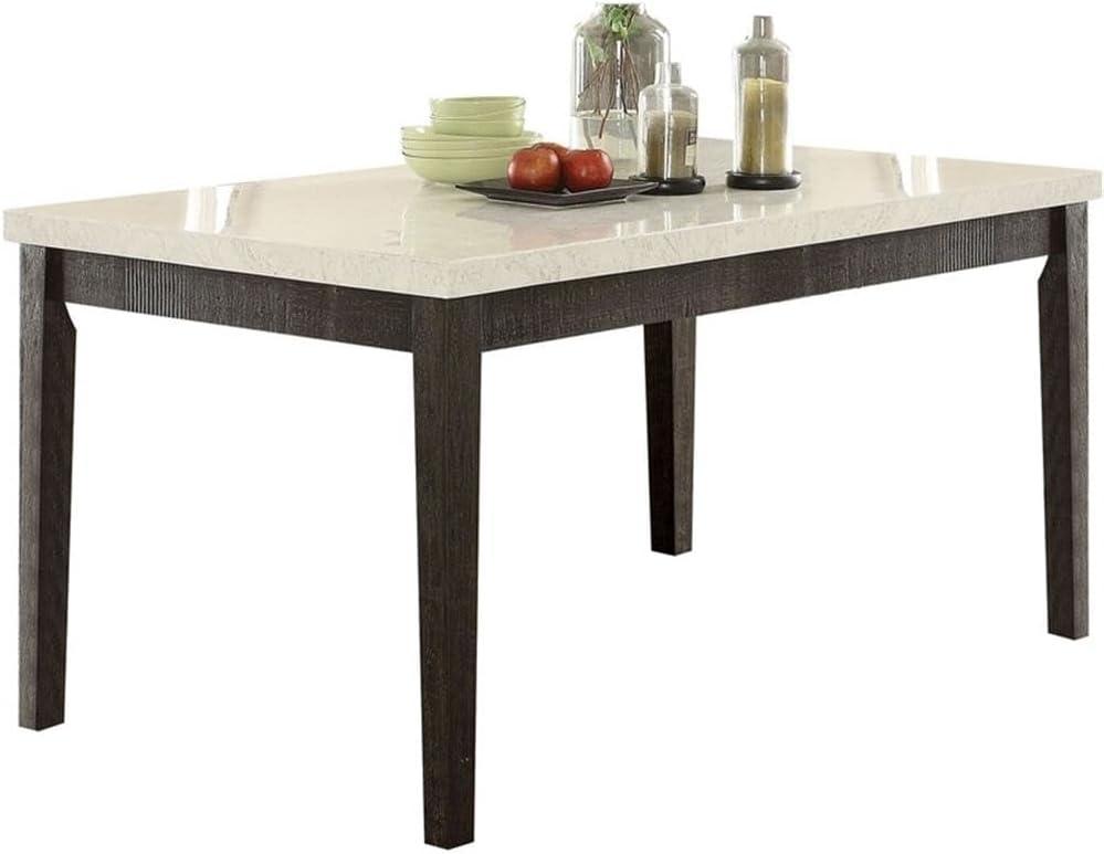 Acme Nolan Dining Table in White marble and Salvage Dark Oak