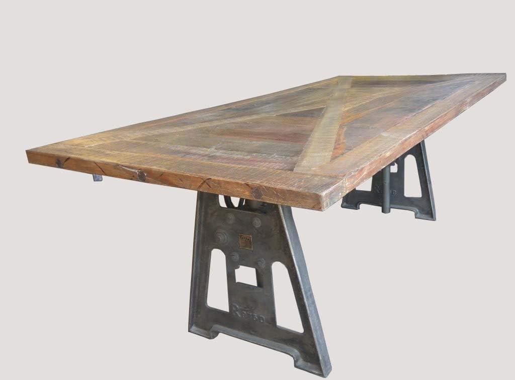 This exquisite dining table combines reclaimed wood and a sturdy iron adjustable crank base, making it a remarkable addition to both contemporary and industrial styles. Measuring a generous 76.20 x 210.80 x 101.60 cm, it offers ample room to comfortably seat up to six guests, along with space for serving platters and dinnerware. Its eye-catching design brings a touch of sophistication and character to any dining experience, transforming every meal into a memorable event. The versatility of this piece allows it to blend seamlessly with various decor styles, ensuring it becomes the focal point wherever it is placed.