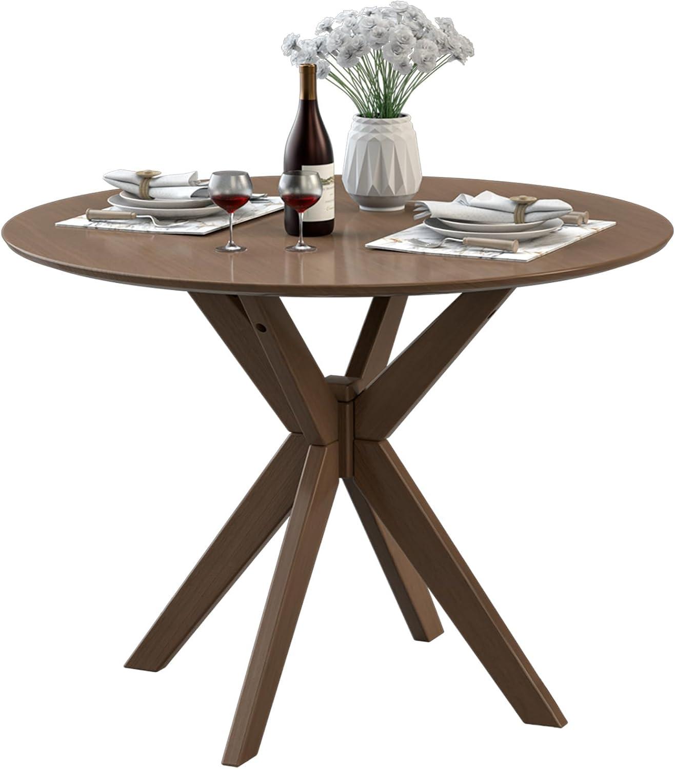 This elegantly designed round dining table, measuring 35.4 inches, is perfect for accommodating 2 to 4 individuals, making it ideal for compact living spaces such as apartments or small kitchens. Crafted from high-quality medium-density fiberboard and solid rubberwood, it combines durability with a sophisticated vintage charm that complements a variety of interiors—from dining rooms to balconies. The unique cross-style base not only enhances aesthetic appeal but also provides exceptional stability, ensuring it remains standing strong while supporting up to 264 pounds. The scratch-resistant and waterproof surface promotes longevity, making it suitable for daily use.