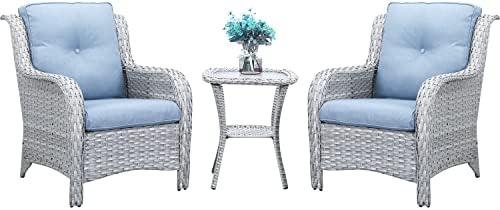 This outdoor dining set combines elegance with comfort, featuring two hand-woven chairs and a stylish glass-top side table. The light gray wicker creates a contemporary look that complements any outdoor space, from patios to balconies. Each chair is designed with high-quality, weather-resistant materials, including PE rattan and a powder-coated steel frame, ensuring durability against the elements while supporting up to 350 pounds. Ergonomically crafted, the chairs provide optimal comfort with their specially curved armrests and a backrest that tilts 15 degrees, promoting relaxation during long gatherings.