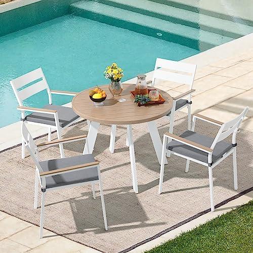 Stylish Aluminum Outdoor Dining Set for 4 with Umbrella Hole