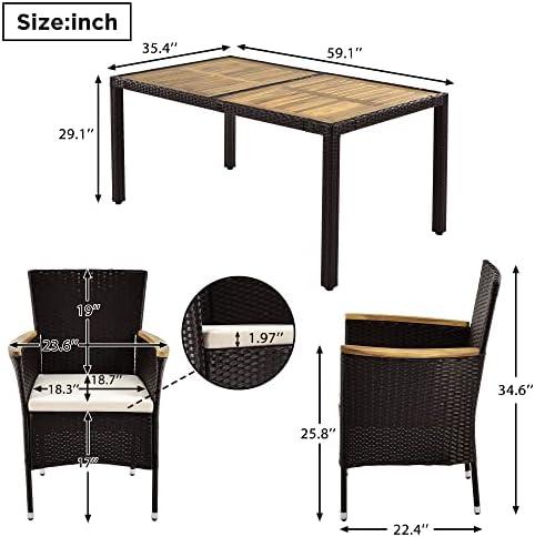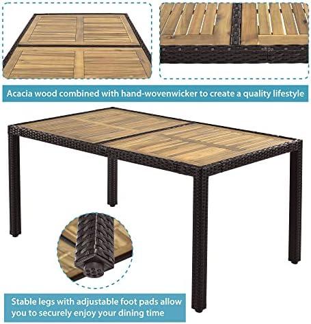 We appreciate the versatility of this outdoor dining set, which seamlessly integrates into various outdoor spaces, whether it’s our garden, backyard, or poolside. The design allows for effortless gatherings with family and friends, making it a fantastic addition for hosting meals or simply enjoying leisurely afternoons. With its combination of stylish PE rattan wicker and a gorgeous acacia wood tabletop, it offers both elegance and functionality. The comfortable, foam-padded chairs enhance our experience, ensuring a pleasant seating arrangement for relaxation and dining alike.