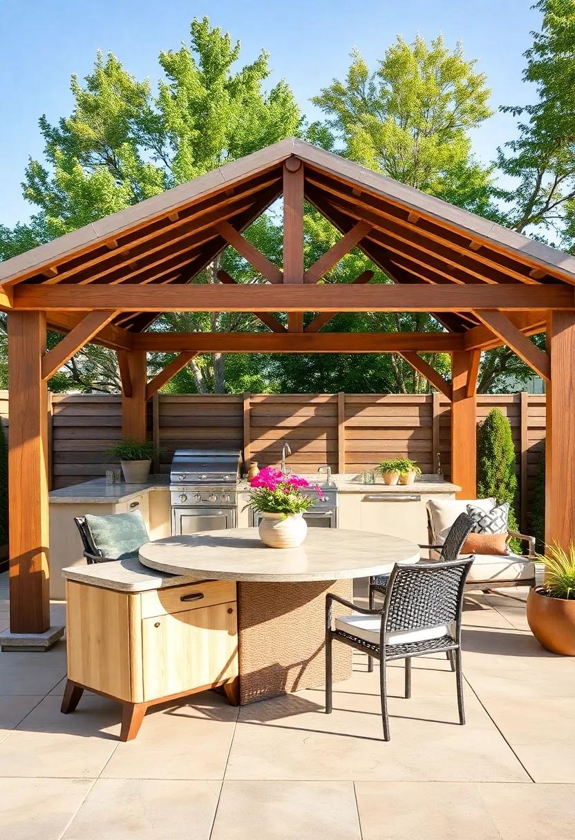 Creating a harmonious environment for communal dining and relaxation in your outdoor kitchen gazebo fosters connections and memorable gatherings. Embrace designs that prioritize comfort and functionality, such as: