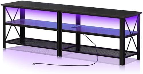 This versatile television stand combines modern aesthetics with functionality, accommodating TVs from 40 to 75 inches. With a spacious size of 63″W x 15.4″D x 20.3″H, the stand features three open shelves, perfect for organizing game consoles, DVDs, and enhancing your living space’s visual appeal. The surface is easy to clean, reducing maintenance hassle, while the X-shape stabilization ensures durability and adds an attractive design element. Not to mention, the smart LED light band offers 20 color changes, allowing you to alter the ambiance of your room effortlessly through a remote control.