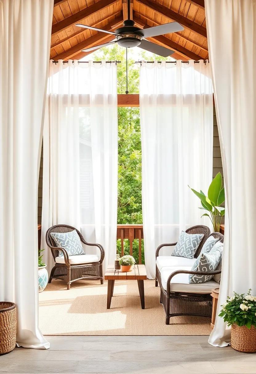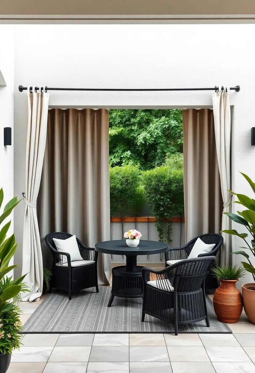 Utilizing curtains can dramatically reframe your outdoor seating area, creating a sophisticated and inviting atmosphere. To begin, consider selecting lightweight fabrics that allow for a gentle breeze while still providing privacy. Sheer or semi-sheer options in soft colors can dance in the wind, adding an ethereal touch. alternatively, bold patterns can create a focal point, enhancing the design of your patio. Whichever fabric you choose, be sure to match it with the existing decor to maintain a cohesive style. You can enhance this setup further with accessories like potted plants or stylish furniture, ensuring comfort and charm blend effortlessly.