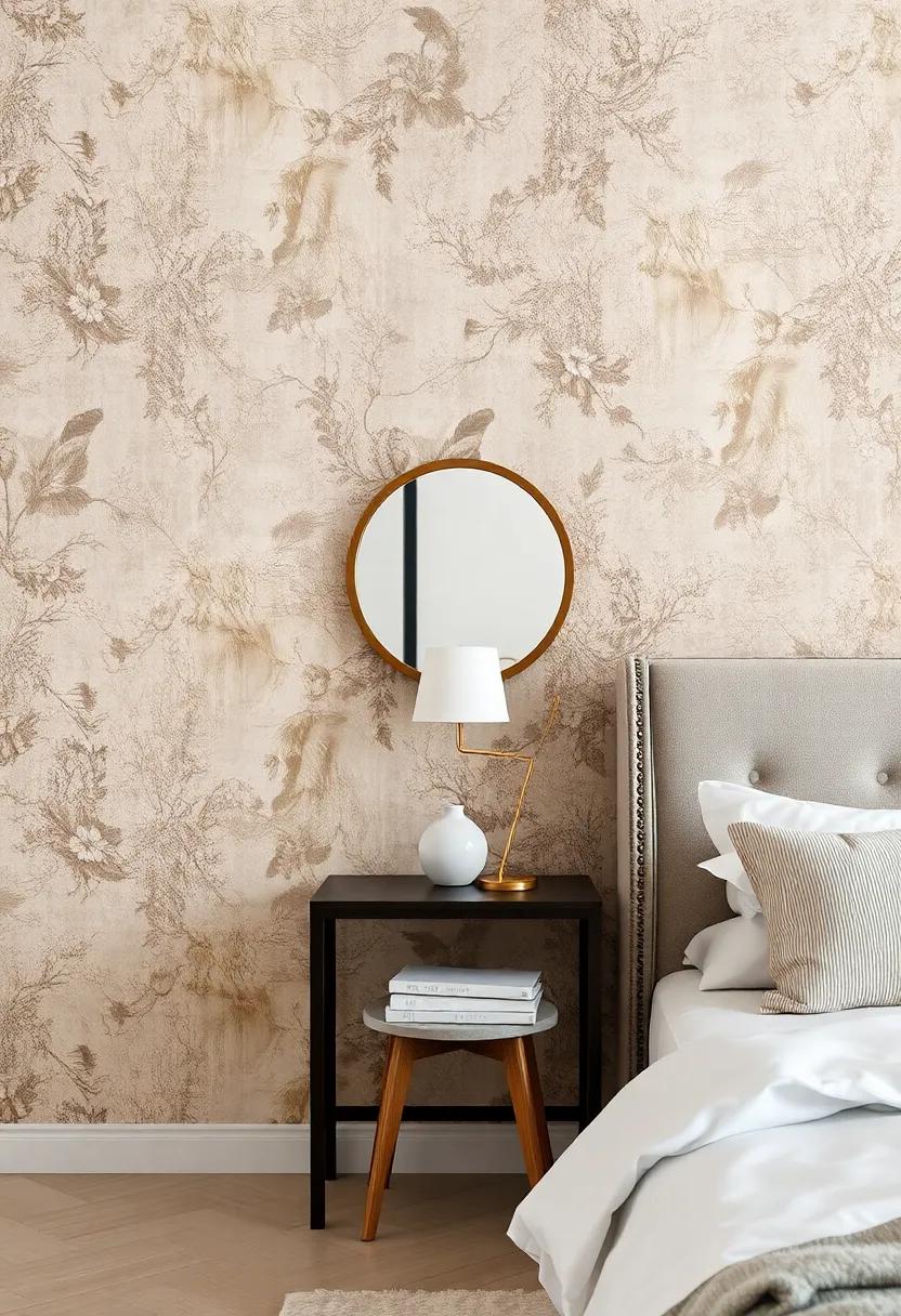- Soft linens: Choose bedding in muted or complementary tones to balance the intricate walls.