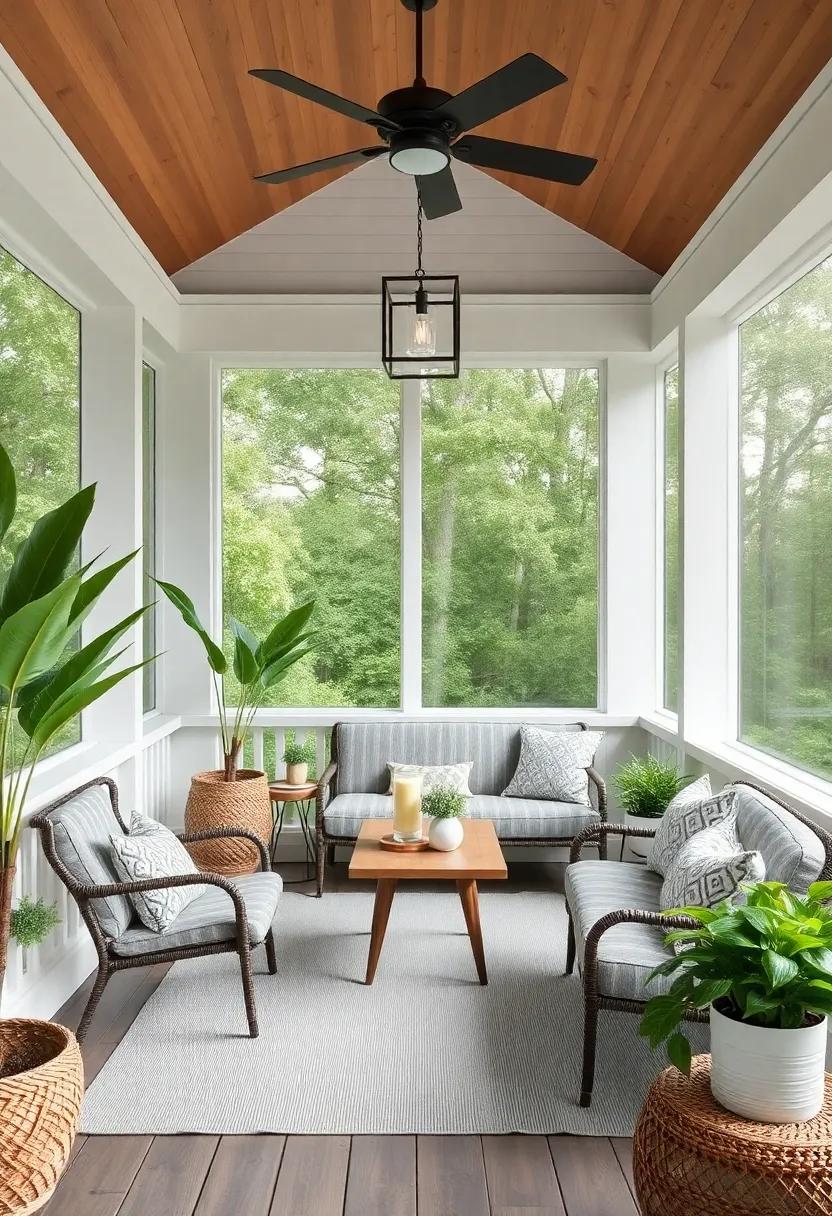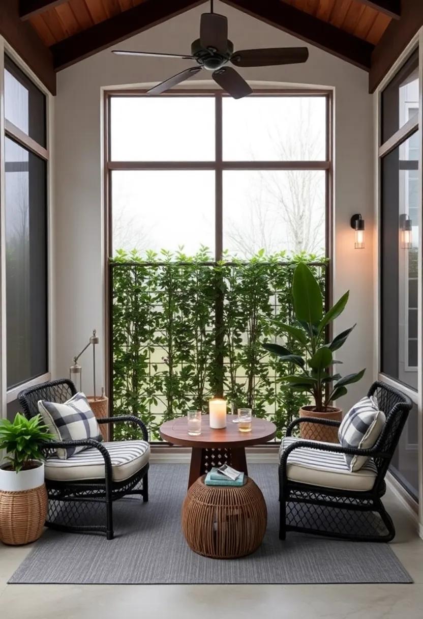 To create a peaceful retreat on your screened porch, consider implementing clever design strategies that enhance privacy while maintaining a cozy atmosphere. Hanging outdoor curtains made of weather-resistant fabric not only block unwanted views but also add a touch of elegance. Alternatively, you might opt for bamboo screens or vertical gardens, which bring a bit of nature indoors while providing essential seclusion. Embellishing these screens with fairy lights can create a magical ambiance during the evenings, transforming your space into a serene nook for relaxation.