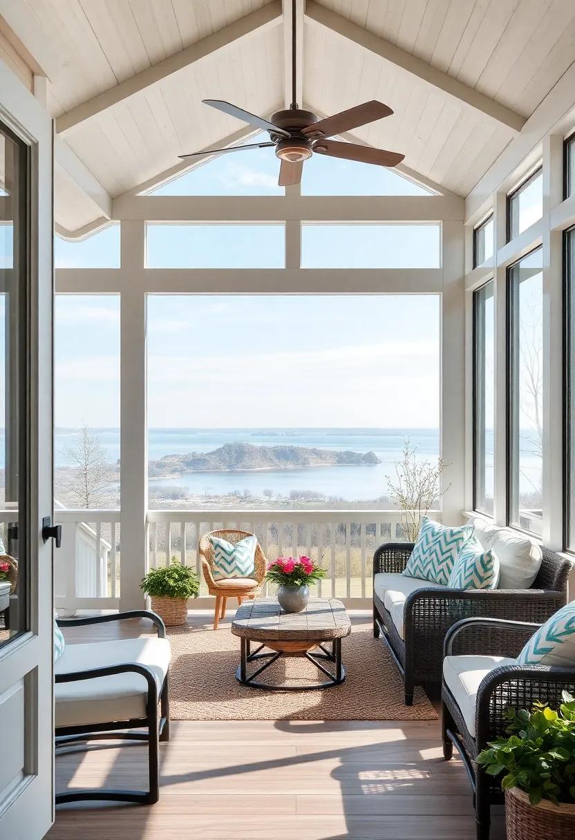 Imagine sipping your morning coffee amidst a picturesque landscape, where the beauty of nature harmonizes with the thoughtful design of your screened porch. To achieve this serene ambiance, consider using large windows or French doors that not only invite natural light but also frame the outdoors as if it were a masterpiece. Accentuate this view with soft, neutral color palettes for your décor to create a soothing escape. Layering textiles like sheer curtains or cozy throw blankets can further enhance the inviting atmosphere while maintaining unobstructed views towards your garden or scenic backdrop.