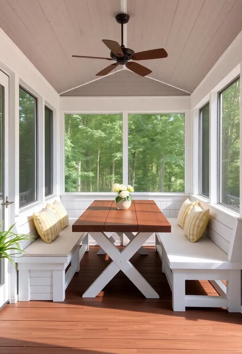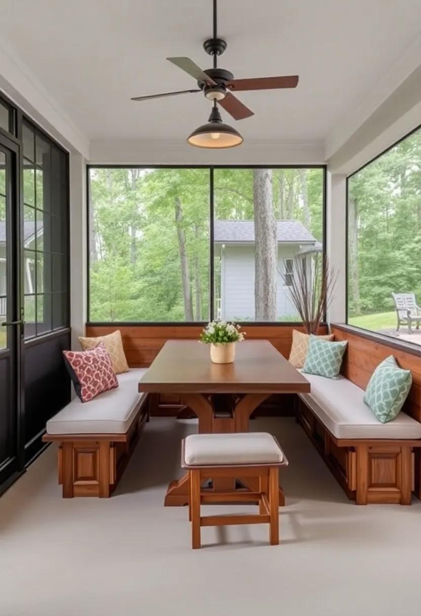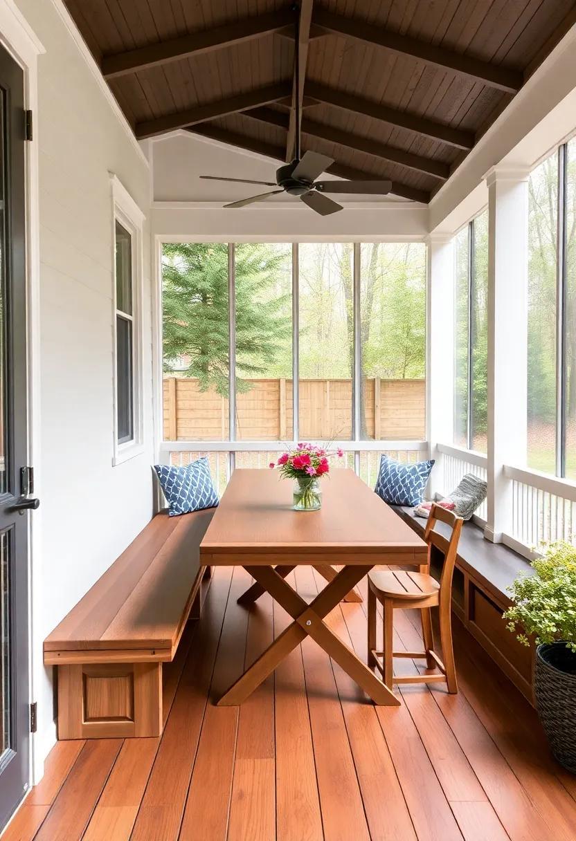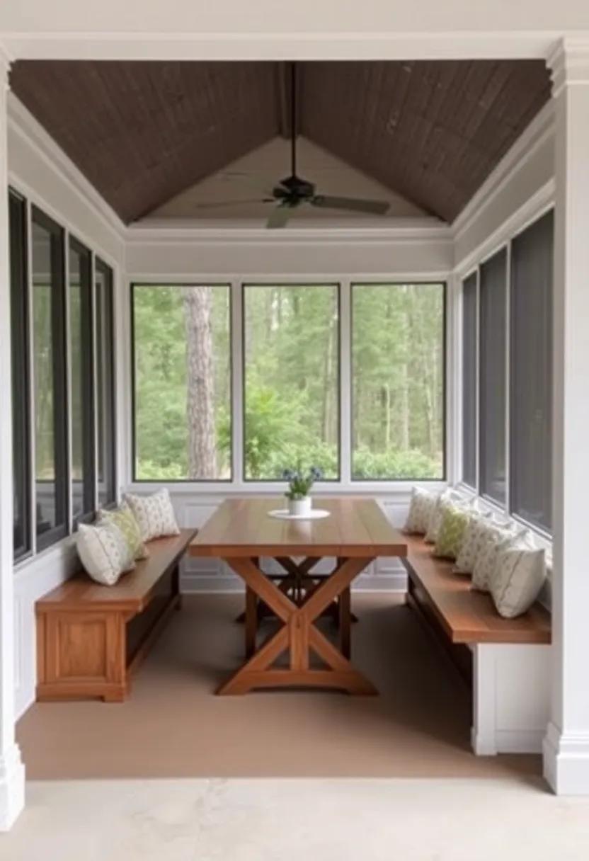 Transforming Your Screened Porch Into a Cozy Dining Haven With Built-in Benches