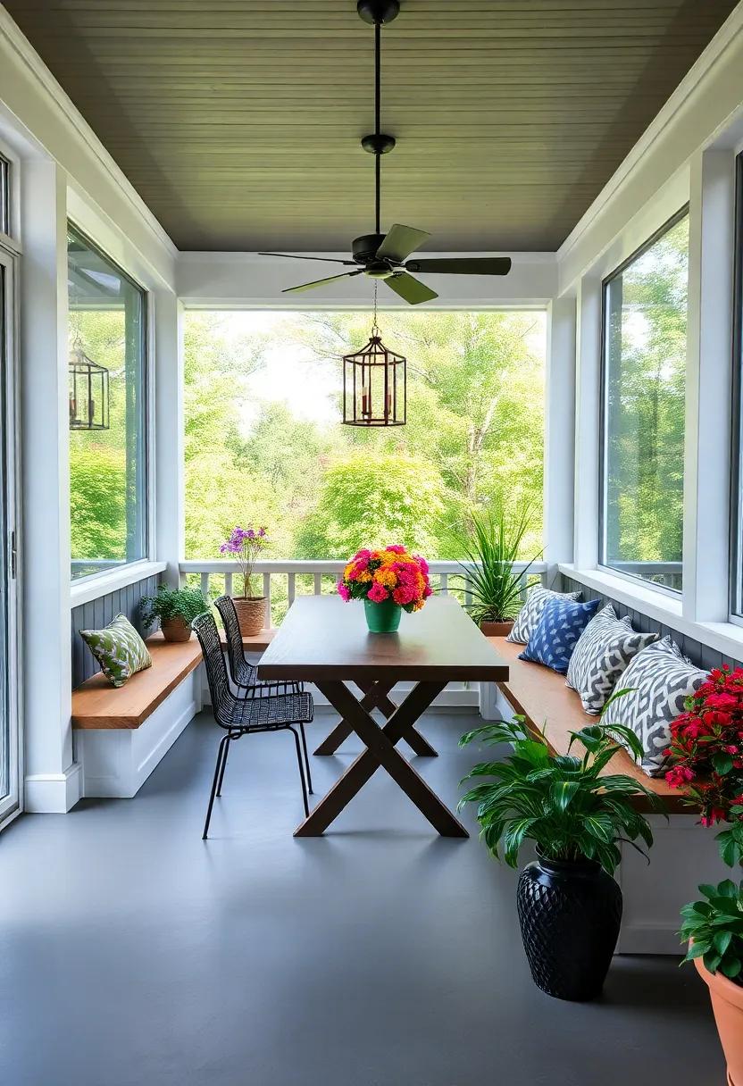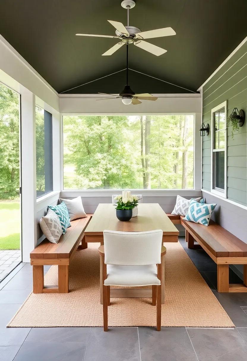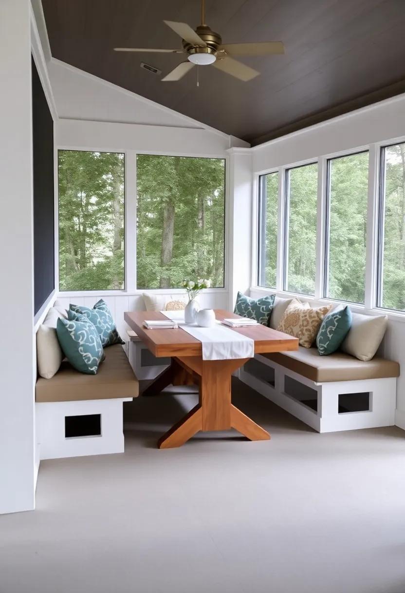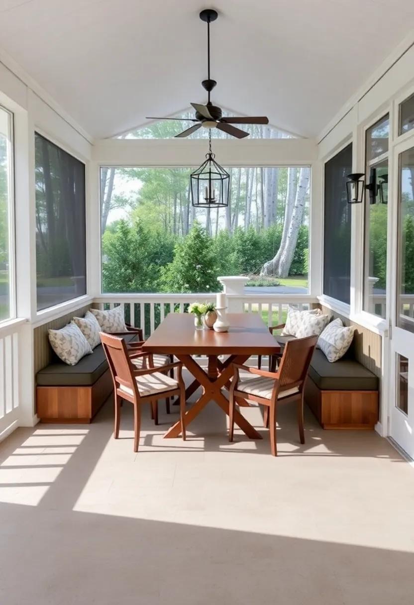 Transforming Your Screened Porch Into a Cozy Dining Haven With Built-in Benches