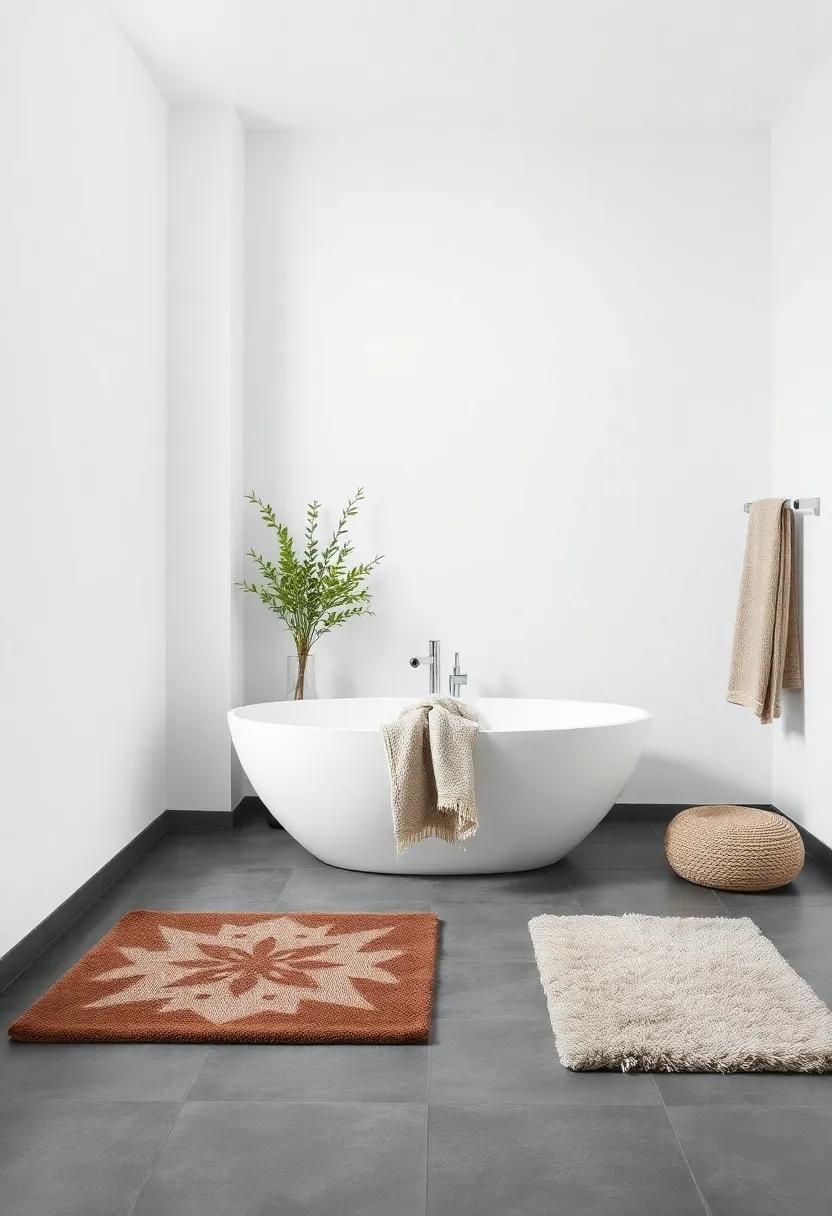 - Layering textures: Combine different textures for depth; consider a plush bath mat paired with a smooth, flat-woven rug.