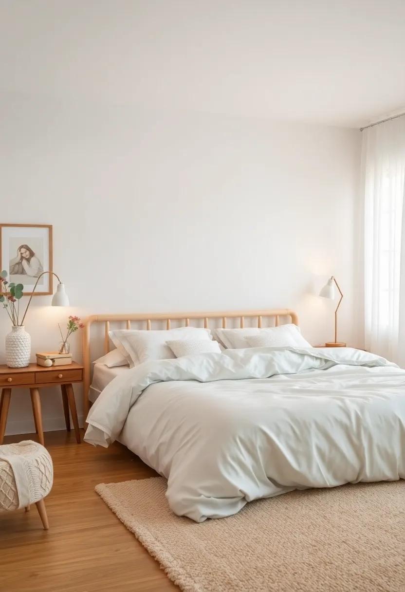 - Statement furniture: Select one or two key pieces, like a sleek bed frame or a vintage nightstand, that stand out while maintaining simplicity.