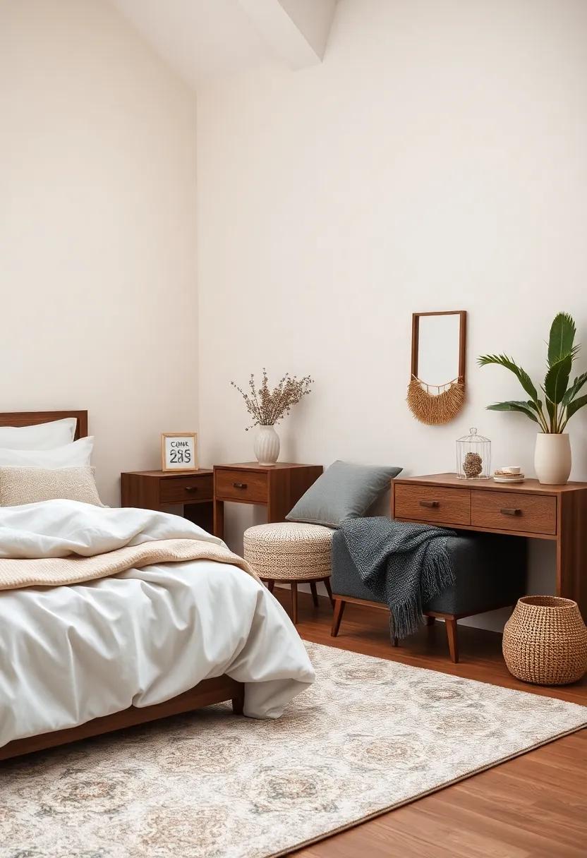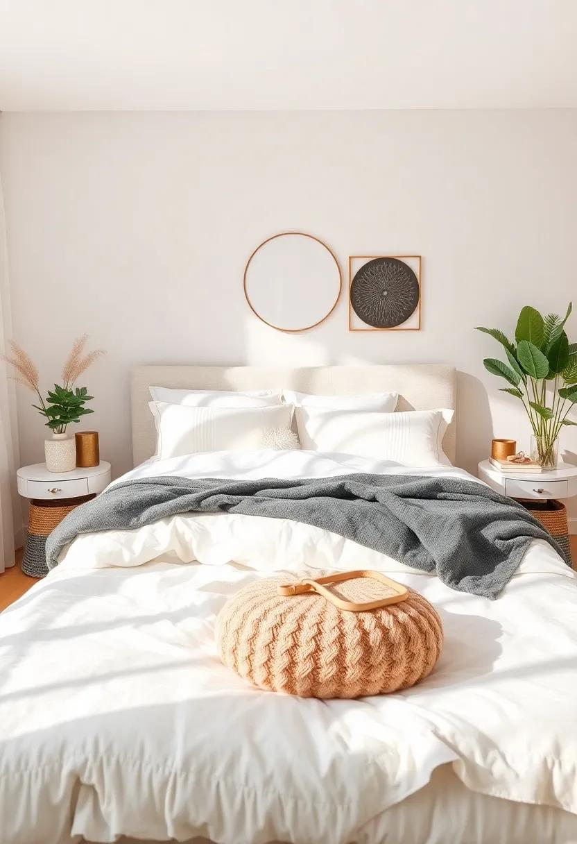Next, turn your attention to the furnishings and accessories that enrich the space. Incorporate items like a woven basket to store extra throws, or an eclectic assortment of picture frames made from natural materials to add character. Add a textured area rug beneath your bed—whether it’s a shaggy, woven, or patterned design—to anchor the room and introduce warmth underfoot. Don’t forget to include elements like a soft ottoman or an upholstered bench at the foot of your bed, which can serve as both a functional and aesthetic feature. The interplay of these textures creates a snug environment perfect for relaxation.