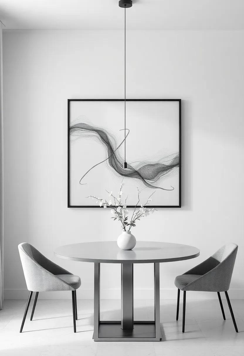 Infusing your dining room with monochrome artwork can elevate the atmosphere, creating a space that feels both sophisticated and serene. Consider selecting pieces with stark contrasts—such as bold black and white photography or minimalist abstract designs. These works not only draw the eye but also encourage conversation among guests as they admire the intricate subtleties that a monochromatic palette can unveil. To achieve a cohesive look, opt for frames that complement the color scheme, such as sleek black or metallic finishes, enhancing the overall aesthetic without overwhelming the visual space.