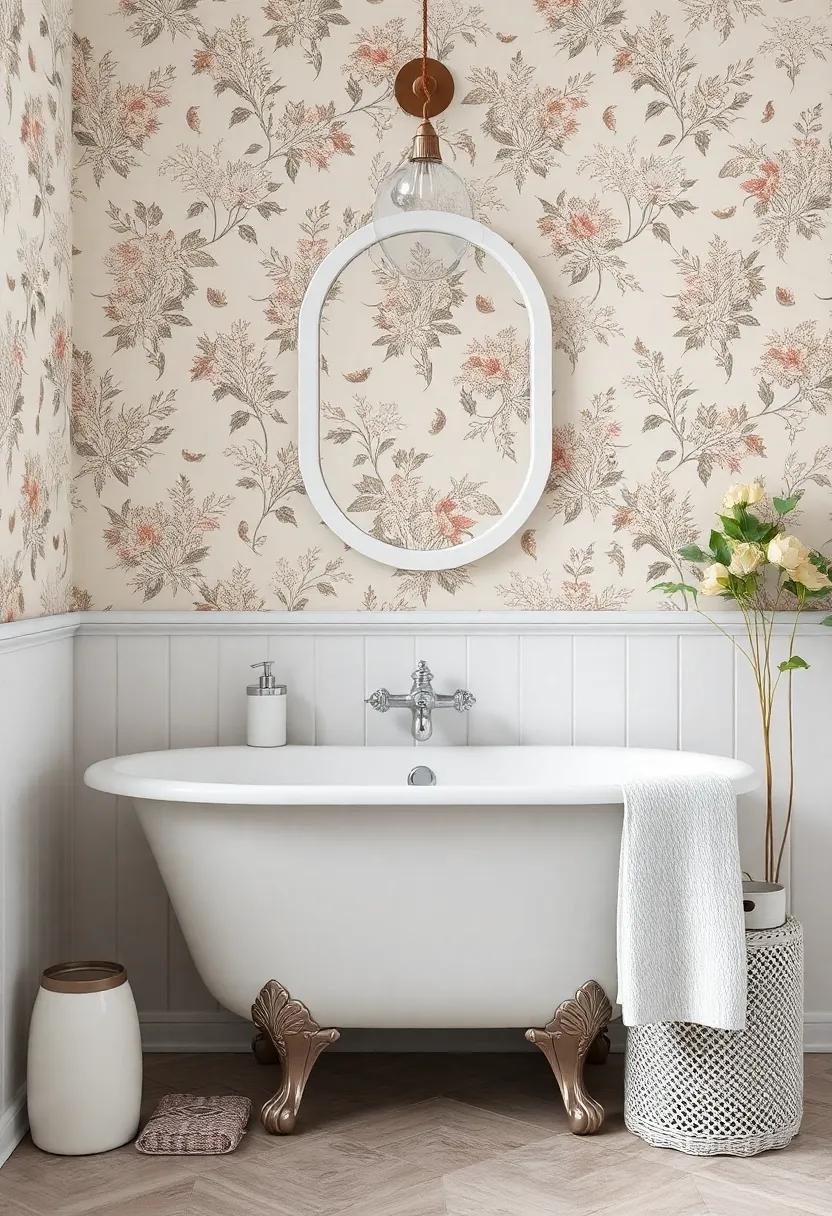 incorporating delicate patterns into your farmhouse bathroom can be an enchanting way to cultivate a serene atmosphere. When selecting wallpaper, opt for designs that feature soft florals, feather-light geometrics, or whimsical vines. These gentle motifs not only elevate the visual appeal of your space but also invite a sense of calmness that can transform daily routines into moments of tranquility. Consider choosing colors like pastel blues, soft greens, or muted pinks that harmonize with natural light, allowing the patterns to breathe and flow in the space.