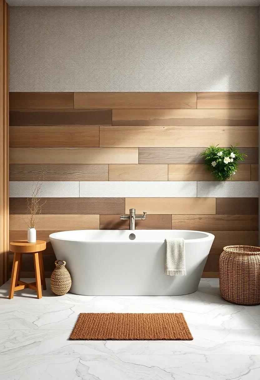 A harmonious blend of texture and color can elevate your bathroom’s aesthetic.Accent pieces like wooden mirrors and picture frames can tie the look together, reinforcing the natural vibe. If you wish to achieve balance, consider decor that highlights both wood and wallpaper. As a notable example, pairing naturally finished wood elements with a wallpaper that boasts natural motifs can create a visual dialog in your space. A few combinations to try are: