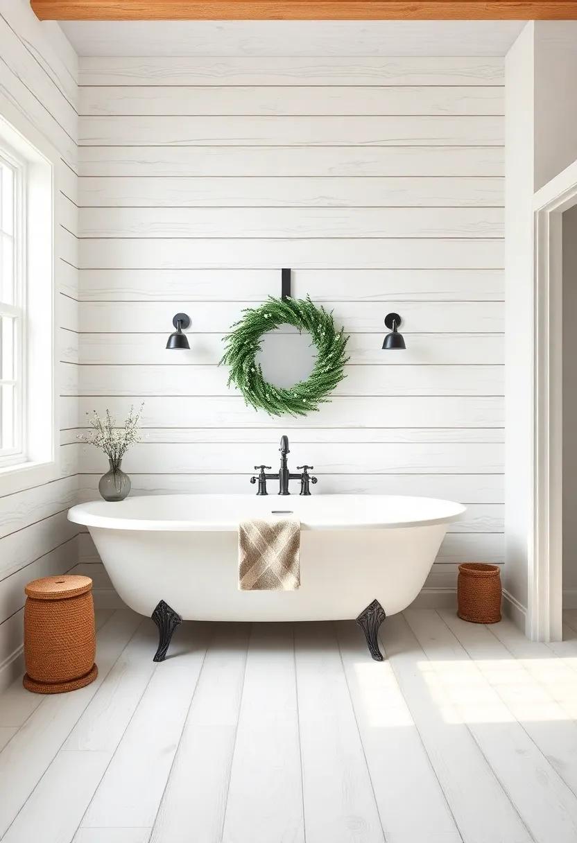 Embracing shiplap within your bathroom decor allows for a seamless blend of rustic charm and modern elegance. The horizontal paneling, often seen in customary barns, infuses the space with a sense of warmth and authenticity. Consider using shiplap wallpaper that offers the same textural appeal without the commitment of wood. This choice not only transforms the walls but can also provide visual interest through various colors and patterns, making it an ideal backdrop for your rustic bathroom sanctuary. To enhance the effect,pair this wallpaper with soft,natural textiles and vintage-inspired fixtures for a cohesive farmhouse look.