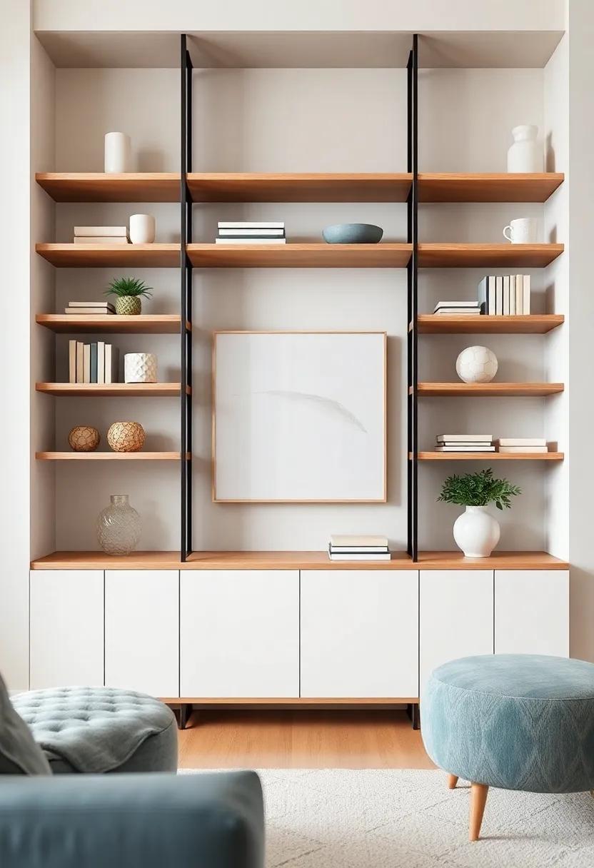 when designing your shelving layout, think beyond traditional configurations. Asymmetrical arrangements can produce a modern vibe, while incorporating floating shelves adds an illusion of space. Not only does this approach make room for personal collections and books, but it can also serve a practical purpose—such as housing plants to bring life into your space. Check out this quick guide to different shelving styles: