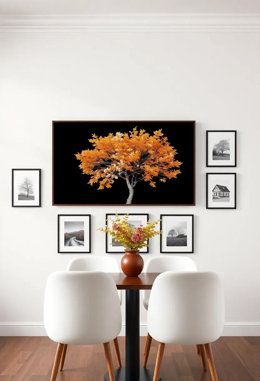 Creating a visually captivating gallery wall in your dining room is all about harmonizing different textures and patterns.Layering various materials can breathe life into your space, inviting warmth and intrigue. Consider incorporating elements like woven baskets, framed textiles, and canvas prints alongside conventional artwork. Mixing these textures offers a tactile experience that engages not just the eyes, but also invites guests to appreciate the thoughtful design.You can also play with finishes—matte frames against glossy prints or natural wood alongside metal accents can create an eye-catching contrast.