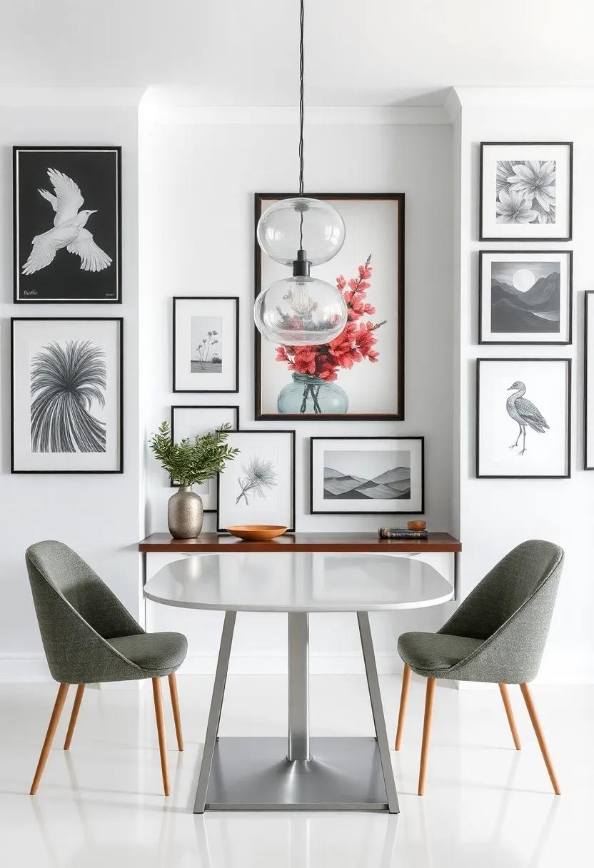 Incorporating art into your dining space goes beyond mere decoration; it transforms the atmosphere and creates a memorable experience for you and your guests. A thoughtfully curated gallery wall serves as a visual anchor, drawing attention and sparking conversation. When you choose pieces that resonate with your personal style or tell a story, you inject personality into an otherwise functional area. Consider including a mix of mediums—framed prints, original art, and even three-dimensional objects—to add depth and intrigue to the display. Play with scaling by alternating between larger statement pieces and smaller accents to achieve a dynamic interplay that keeps the eye moving throughout the space.