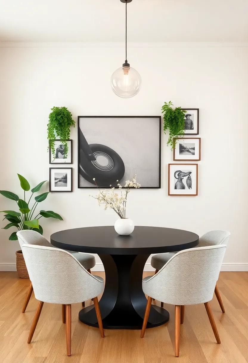 Moreover,you can utilize wall-mounted planters or a vertical garden to transform your dining room gallery wall into a true living artwork. This approach not only maximizes space but also creates a stunning backdrop for your dining experience. To enhance this effect, pair your greenery with carefully curated art pieces that complement the colors and shapes of your plants. Here are a few ideas to consider for integrating greenery seamlessly into your dining room design: